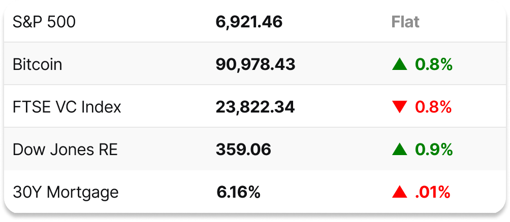 🏢 CRE prices tick up: The Green Street Commercial Property Price Index (CPPI) showed a 2.3% annual gain in 2025, with all major sectors either positive or neutral, and with data center, strip retail and health care properties performing the best.