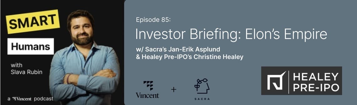 🎤 Listen: To the newest episode of Smart Humans, where Slava Rubin, Jan-Erik Asplund and Christine Healey explore the investment landscape surrounding Elon Musk's companies.