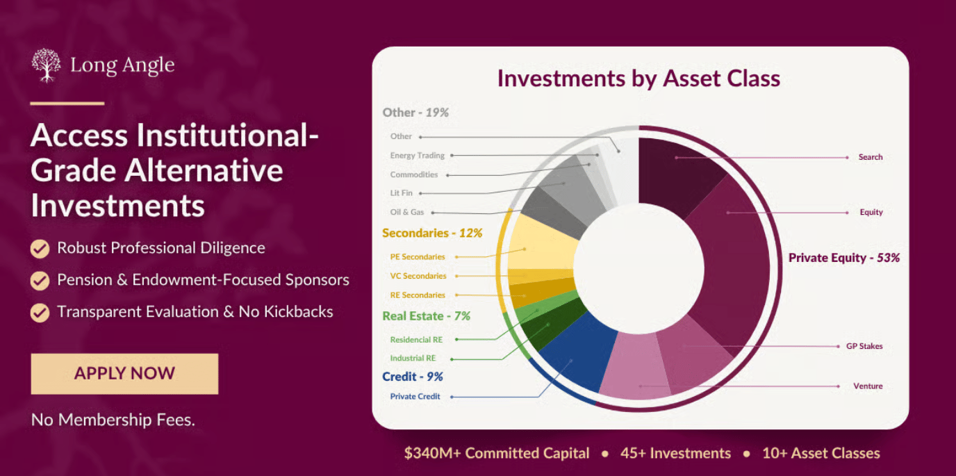 Long Angle is a private, vetted community connecting high-net-worth entrepreneurs and executives with institutional-grade alternative investments. No membership fees.
