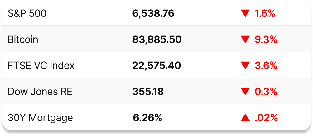 In what has quickly become a recurring story, crypto and stock markets struggled yesterday. The S&P 500 fell 1.6% and the Nasdaq dropped 2.1% even after both surged to start the day. Crypto lost around 9% of its value, falling below $3 trillion for the first time since April, with Bitcoin dropping below $85,000, almost $40,000 below its all-time high from just last month. Many major tokens saw double-digit declines and have fallen significantly in the past week.