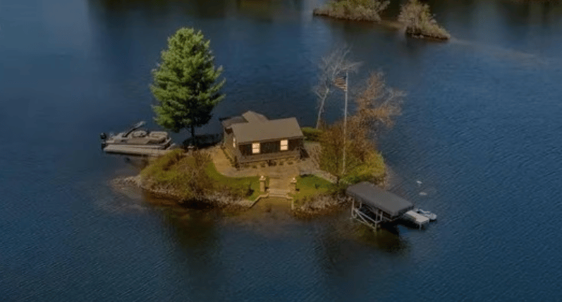 For people who are looking for an isolated retreat, a tiny home on a small private island in Maine is on the market. Located in Waterboro, 40 minutes southwest of Portland, the 487-square-foot, 1-bedroom home is on a 3,920 square foot island and is accessible only by boat, or by snowmobile if the pond is frozen. The newly-renovated interior comes fully furnished, and could have a strong market as a vacation rental. The asking price is $685,000, for a fairly high price per square-foot for the home, though it’s less if you consider the price per square-foot for the entire island.