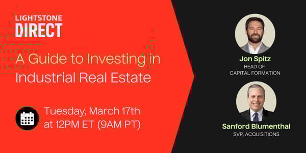Lightstone DIRECT is hosting a special educational session to provide a practical introduction to the asset class and help investors better understand how experienced operators evaluate industrial investments. March 17 at 12 PM ET.